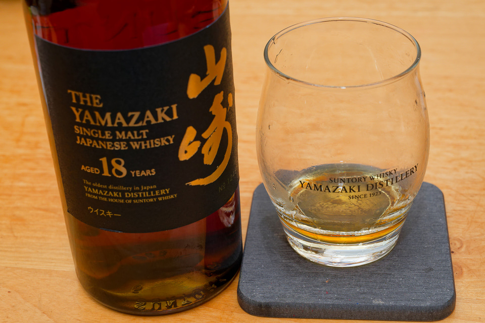 終わりに「山崎18年」も試してみました。できるならここぞという特別な日に開けたいところですが、仕事である以上そうもいっていられません。とはいえ、がぶがぶいくのはもったいないのと、その味わいを100%舌に刻みつけたかったので、グラスの底に少しだけ注いでストレートで。
