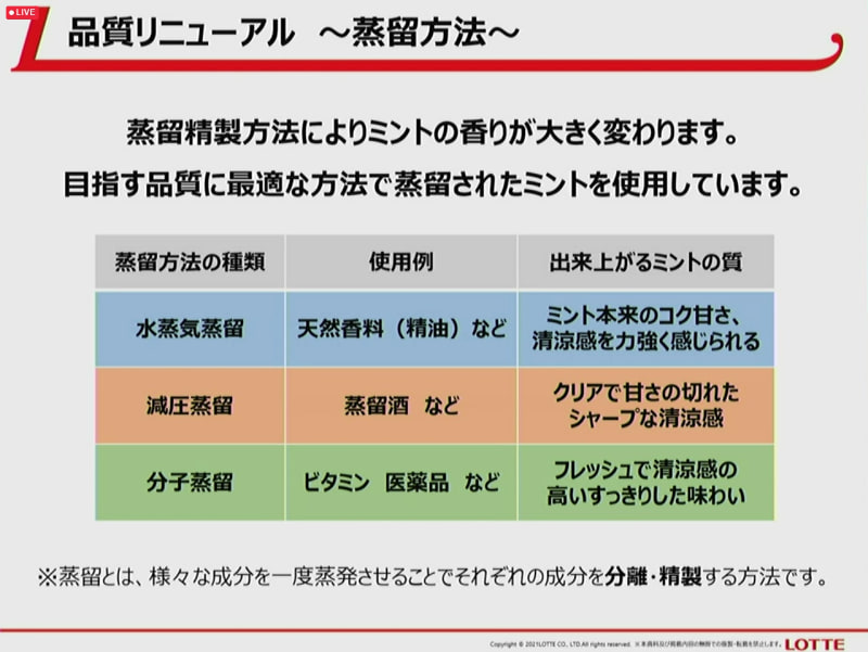 新しくなったロッテの「グリーンガム」、ミントのブレンドや蒸留精製方法の見直しで爽やかさを追求(5/7)