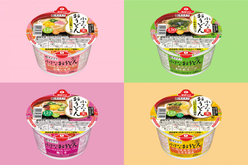 リニューアルした寿がきやの「小さなおうどん」シリーズ