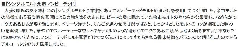ニッカウヰスキー「シングルモルト余市 ノンピーテッド」「シングルモルト宮城峡 ピーテッド」数量限定発売(3/4)