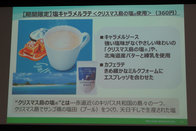モスバーガー、冬のあったかメニュー「塩キャラメルラテ<クリスマス島の塩使用>」と「トマトチキンチャウダー」