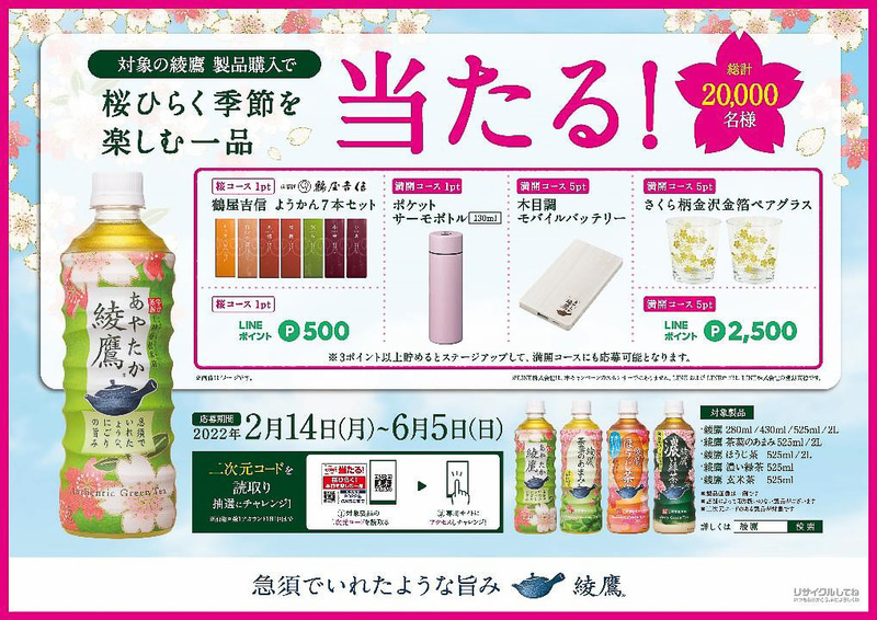 「綾鷹 桜デザインボトル」「綾鷹カフェ 抹茶ラテ」など「綾鷹」桜キャンペーン。吉岡里帆さんの新CMも