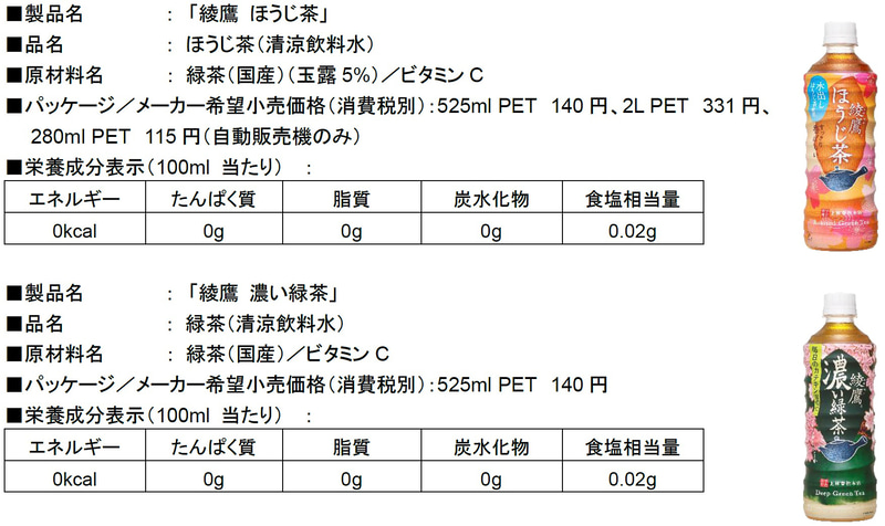 • 「綾鷹 桜デザインボトル」「綾鷹カフェ 抹茶ラテ」など「綾鷹」桜キャンペーン。吉岡里帆さんの新CMも
