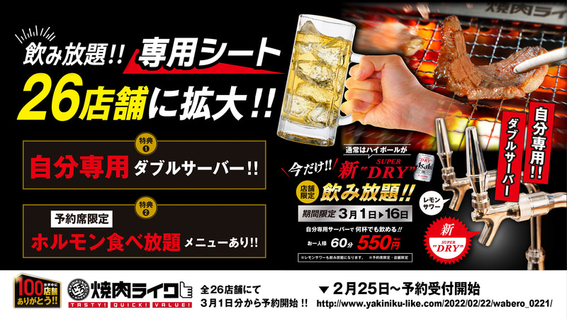 焼肉ライク、自分専用サーバーでハイボールとレモンサワーが飲み放題!「わんこホルモン」で“おひとり様焼肉”を満喫