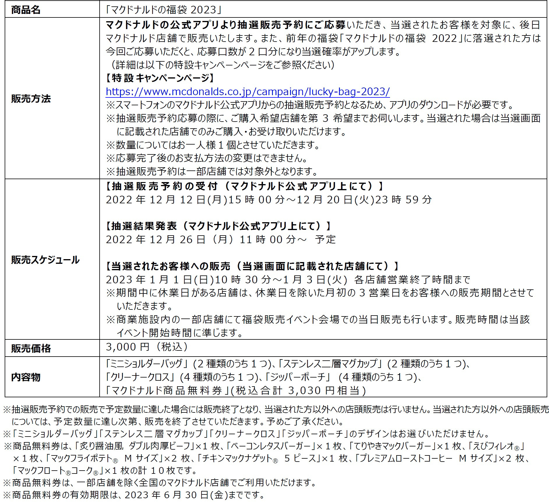 マクドナルドの福袋2023、抽選販売詳細発表! 「CHUMS(チャムス)」とのコラボアイテムをさっそく紹介