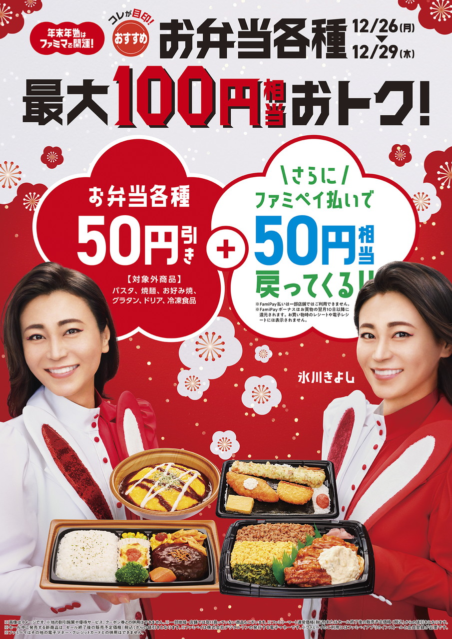 ファミマ、氷川きよしメッセージ入り“総額1.5億円分が当たるクーポンなど「年末年始はファミマで開運!」キャンペーン(8/18)
