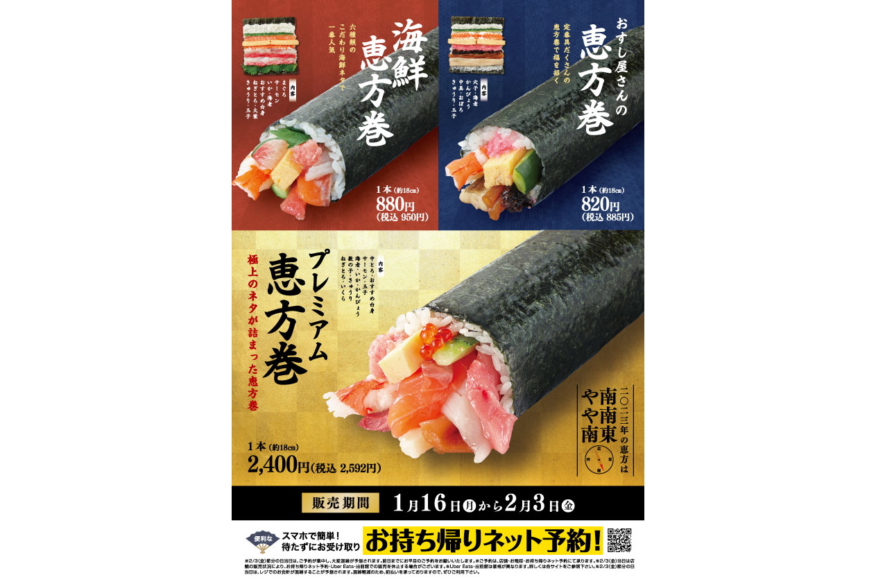 にぎりの徳兵衛/海鮮アトム/海へ「恵方巻」予約開始。先着1000組限定で「節分セット」がもらえる