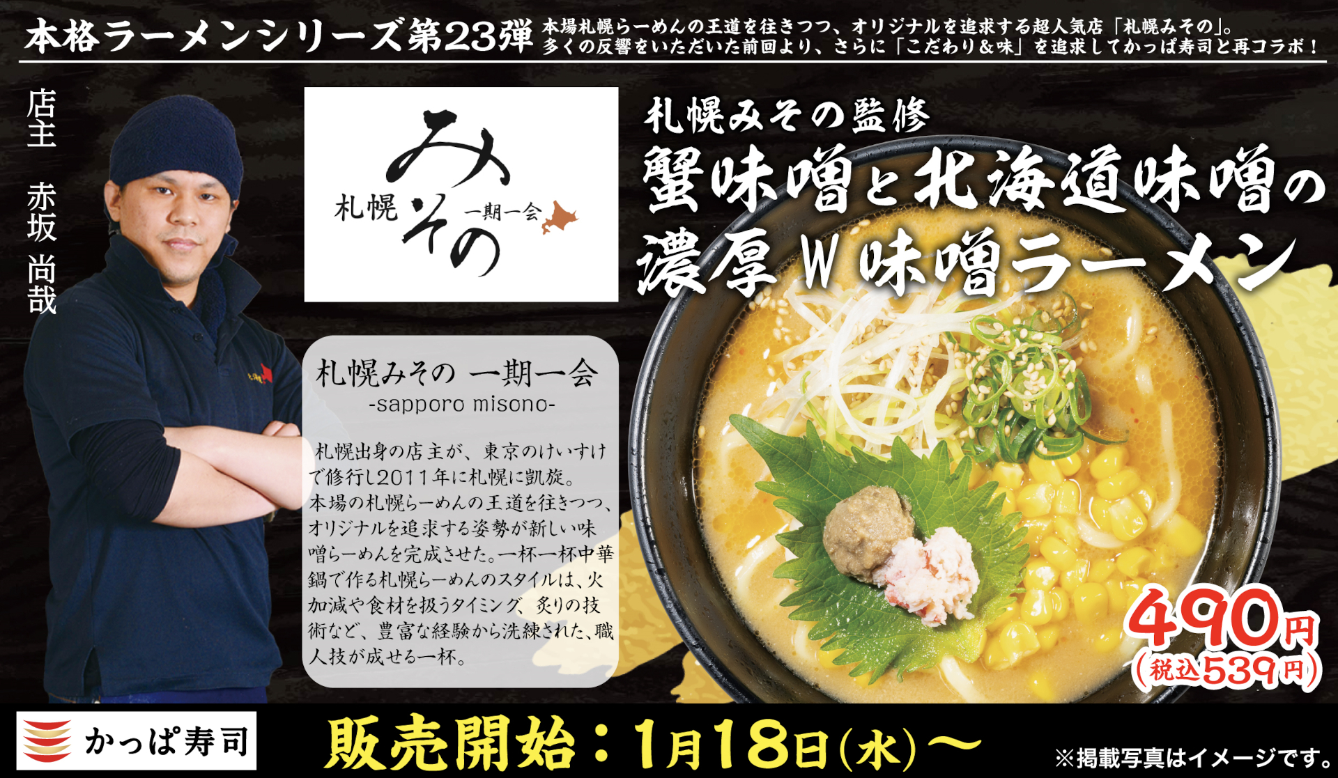 かっぱ寿司「札幌みその」と再コラボした「蟹味噌と北海道味噌の濃厚W味噌ラーメン」(2/4)