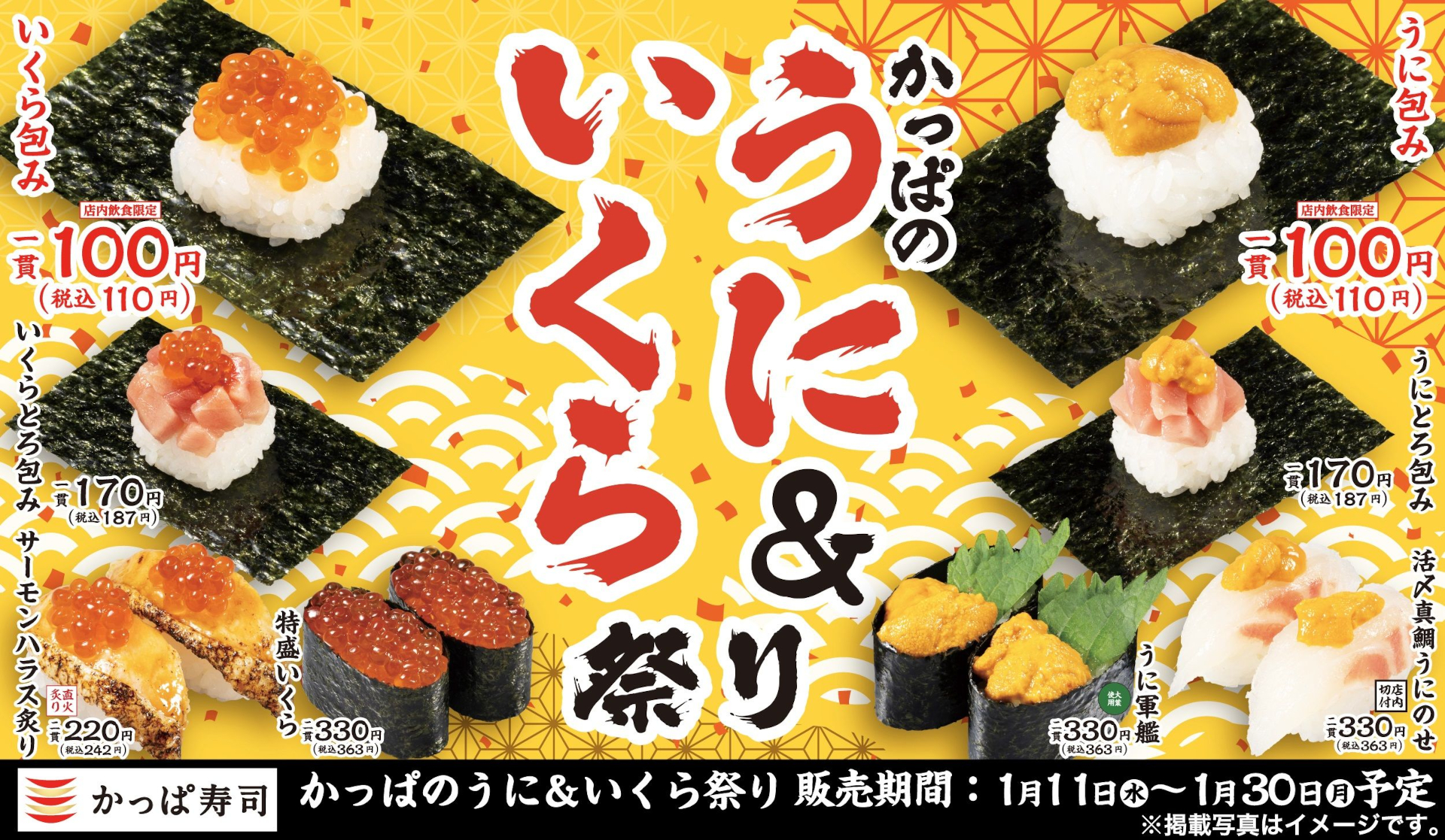 かっぱ寿司、ウニ/イクラが1貫110円から!「かっぱのうに&いくら祭り」