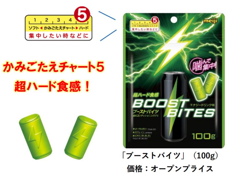 エナジードリンクなグミ、辛さと甘さが交錯する明治「ブーストバイツMEGAスパーク」