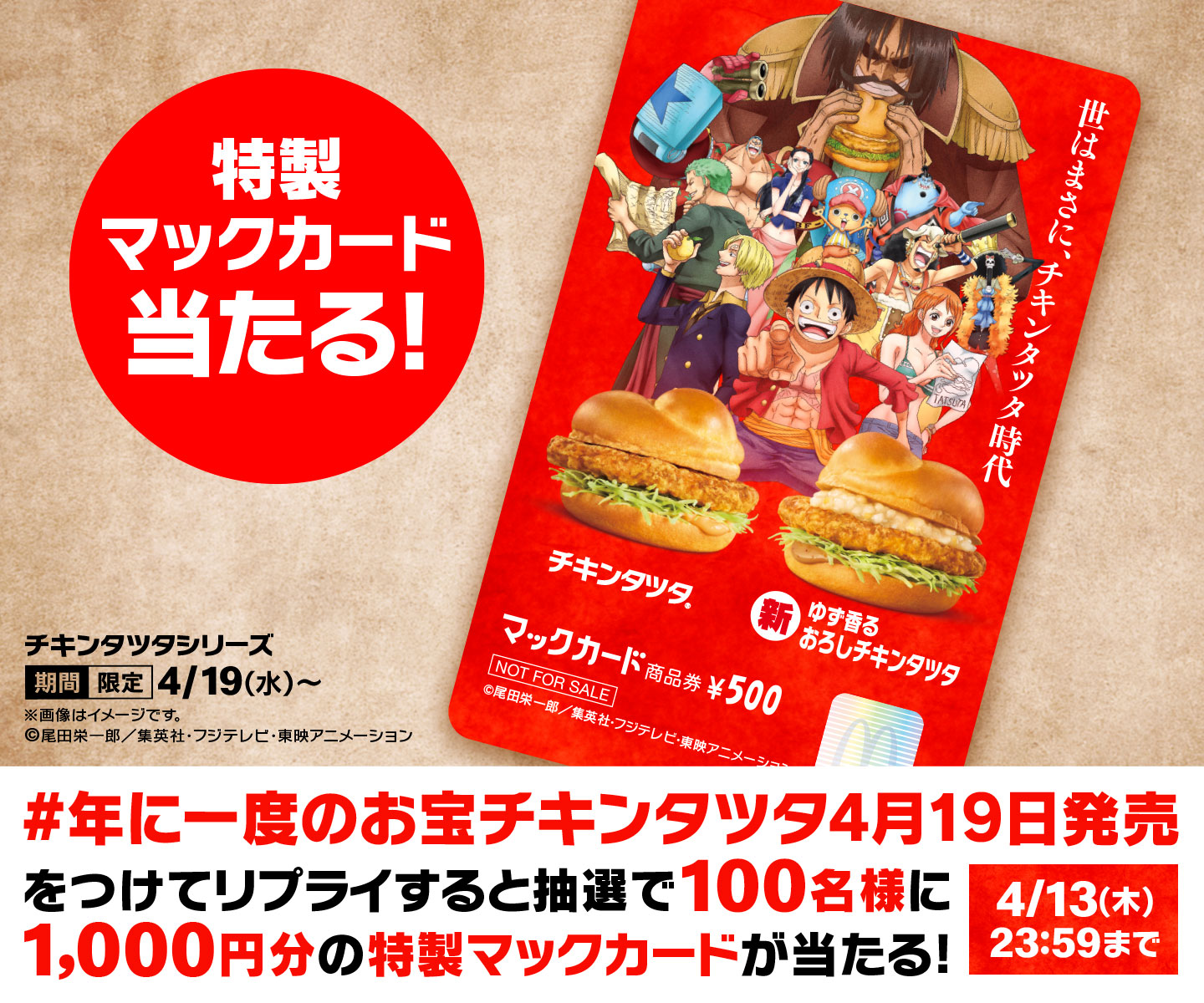 • マクドナルド「チキンタツタ×ONE PIECE」は本日発売! 夜マックには「ごはんチキンタツタ」も