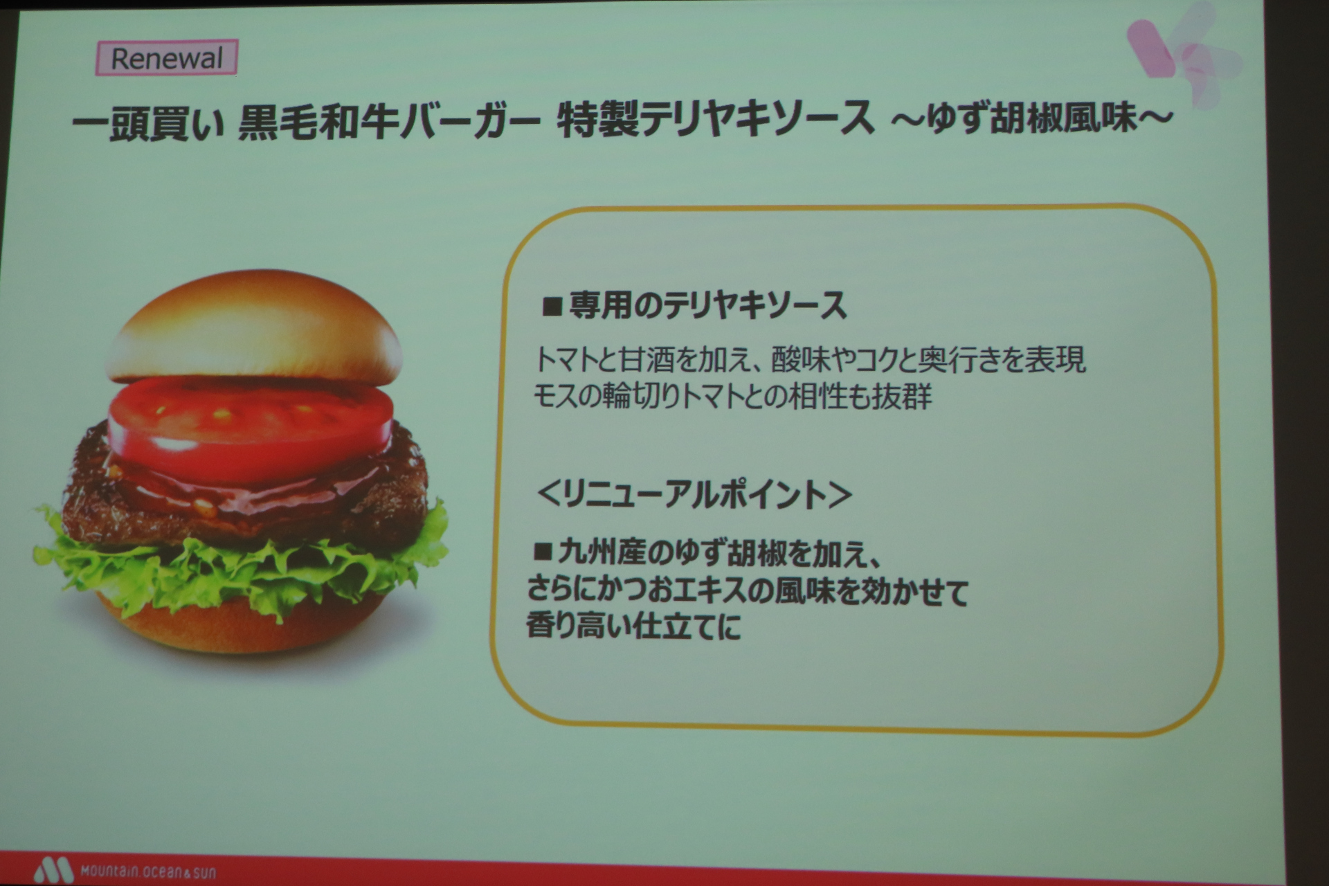 • モスバーガー、一頭買い 黒毛和牛バーガー第2弾「特製テリヤキソース〜ゆず胡椒風味〜」発売