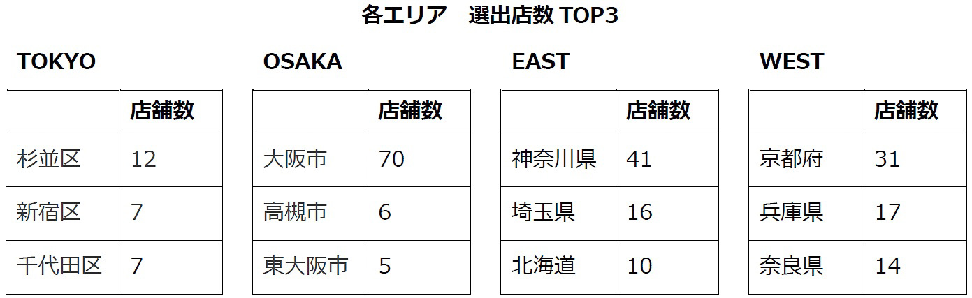 食べログ「そば 百名店 2024」EASTは東京が半数以上を占める