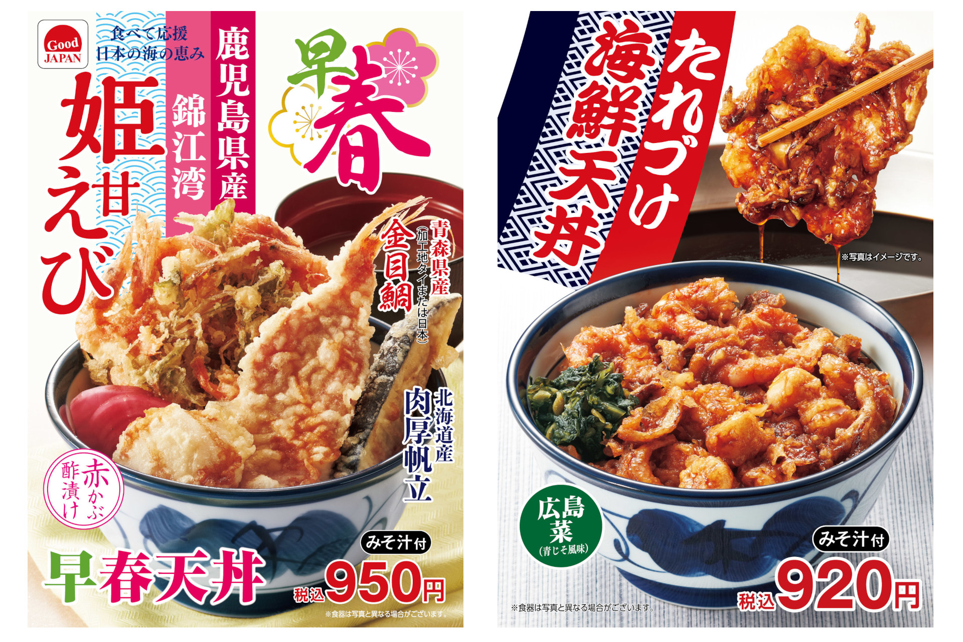 天丼てんや、「海老といかの上天丼」「いろどり天丼」を2月28日発売