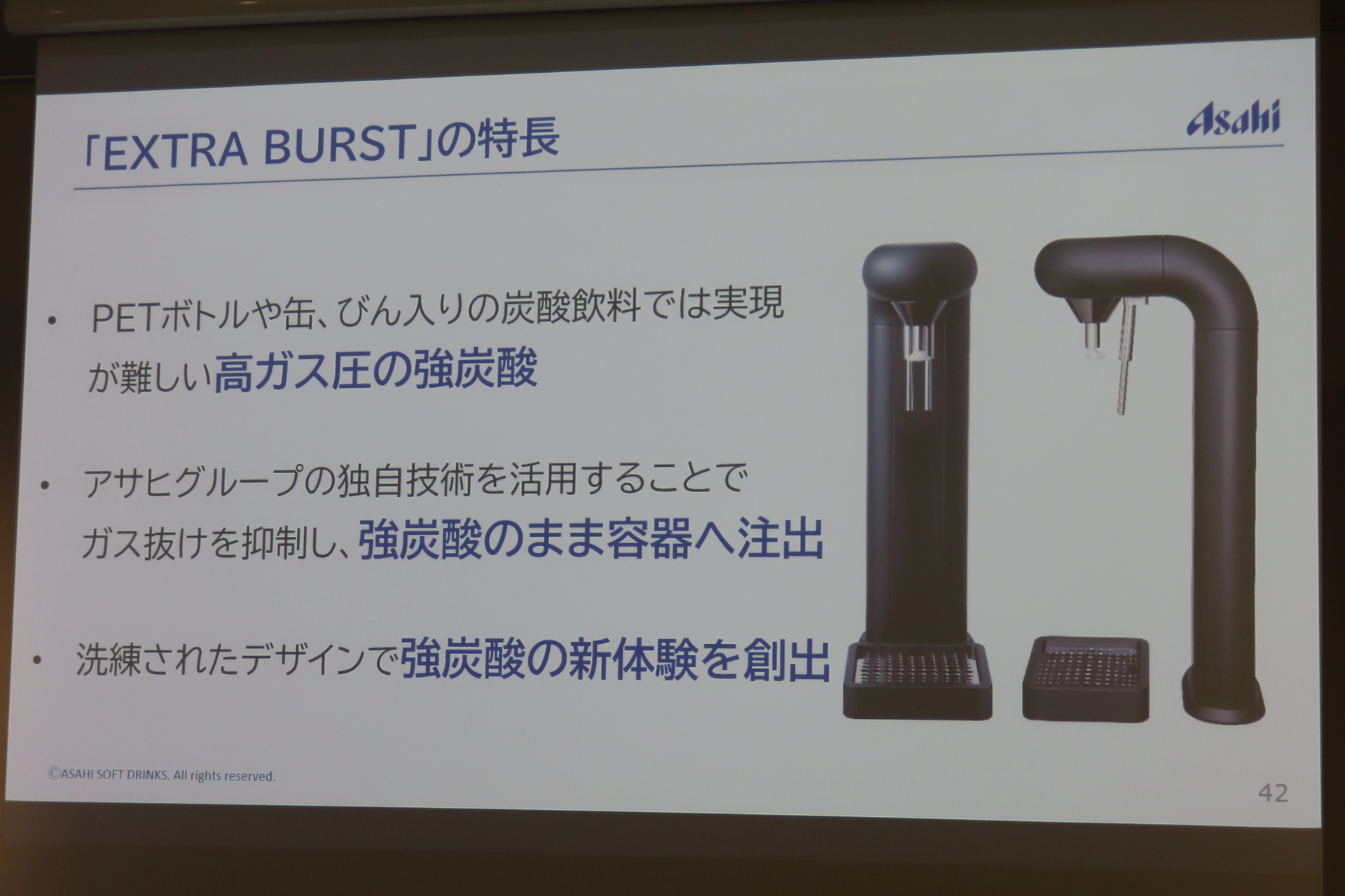 アサヒ飲料、事業方針説明会で強炭酸サーバー「EXTRA BURST」発表(7/9)