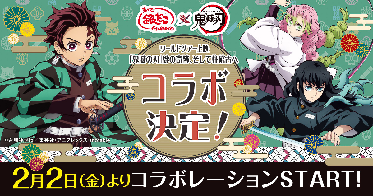 築地銀だこ×「鬼滅の刃」刀鍛冶の里編、店頭に大型パネルを設置。デリバリー限定「ミニクリアファイル」もプレゼント
