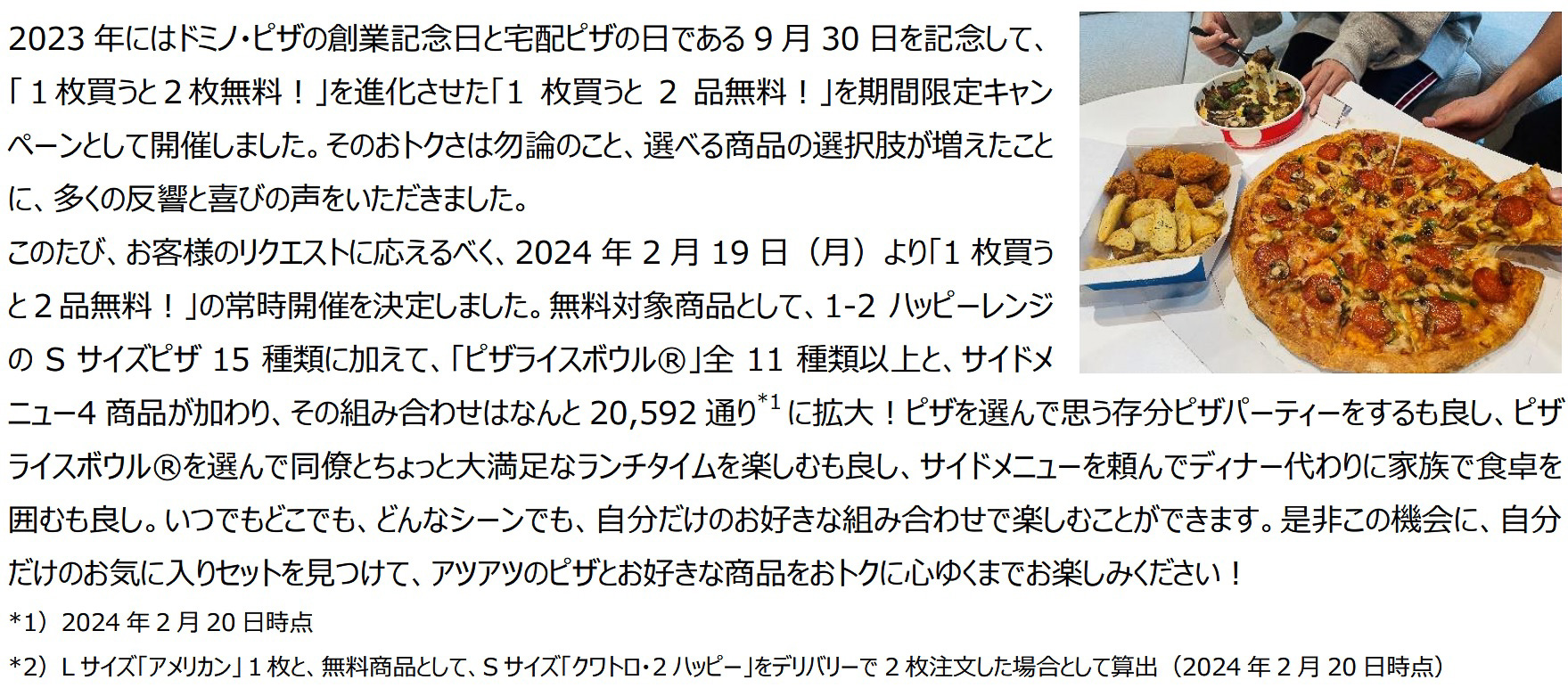 ドミノ・ピザ、3月2日から土日祝は“10時30分開店”に