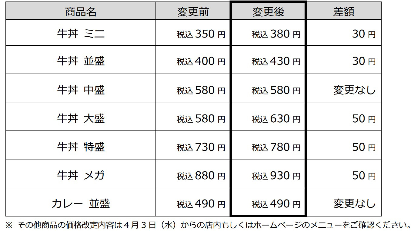 松屋「深夜料金」導入。値上げも実施。牛めし(並盛)は30円アップの430円