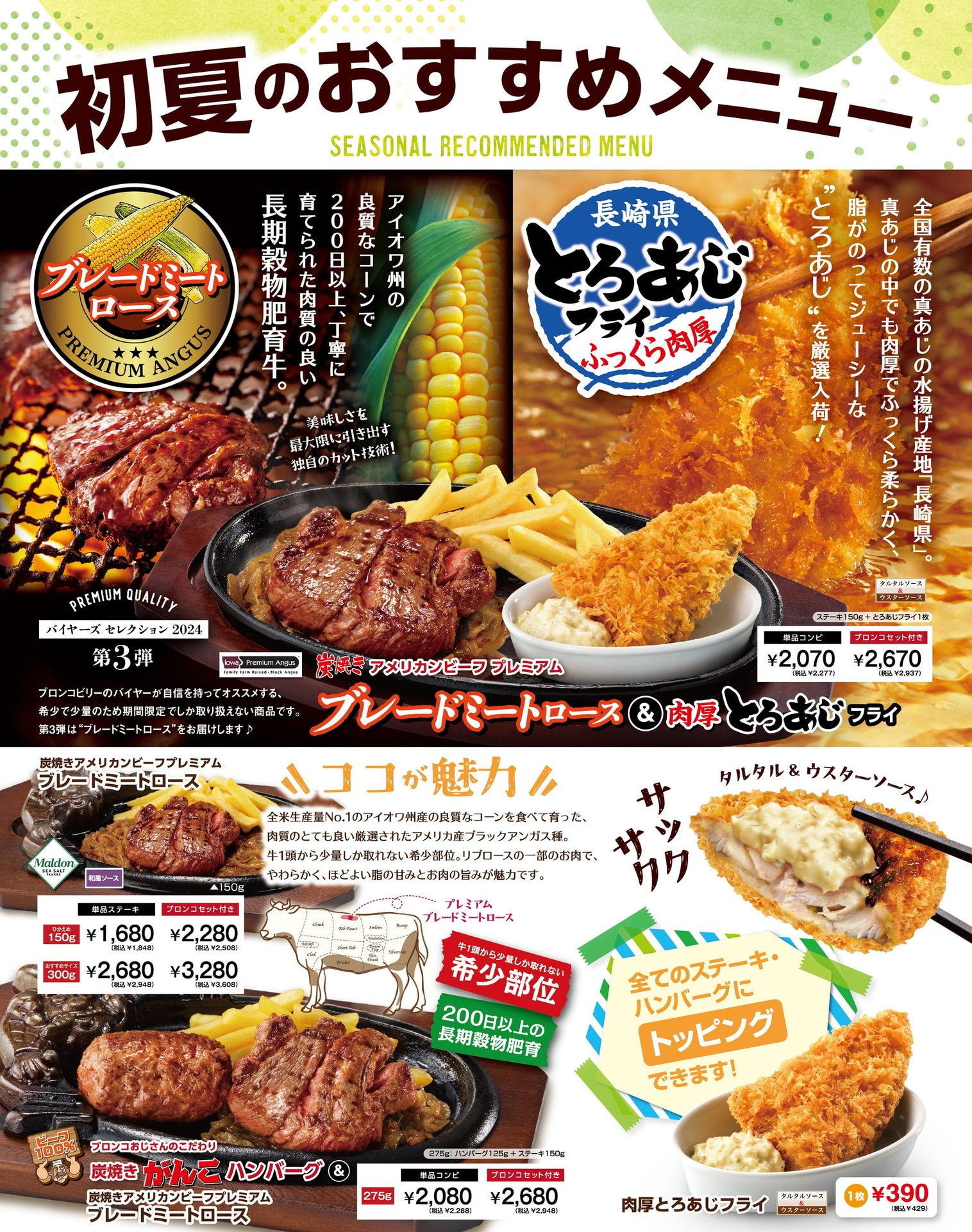 ブロンコビリー「炭焼き国産リブロースステーキ」発売。脂の甘みがじゅわっと口いっぱいに広がる