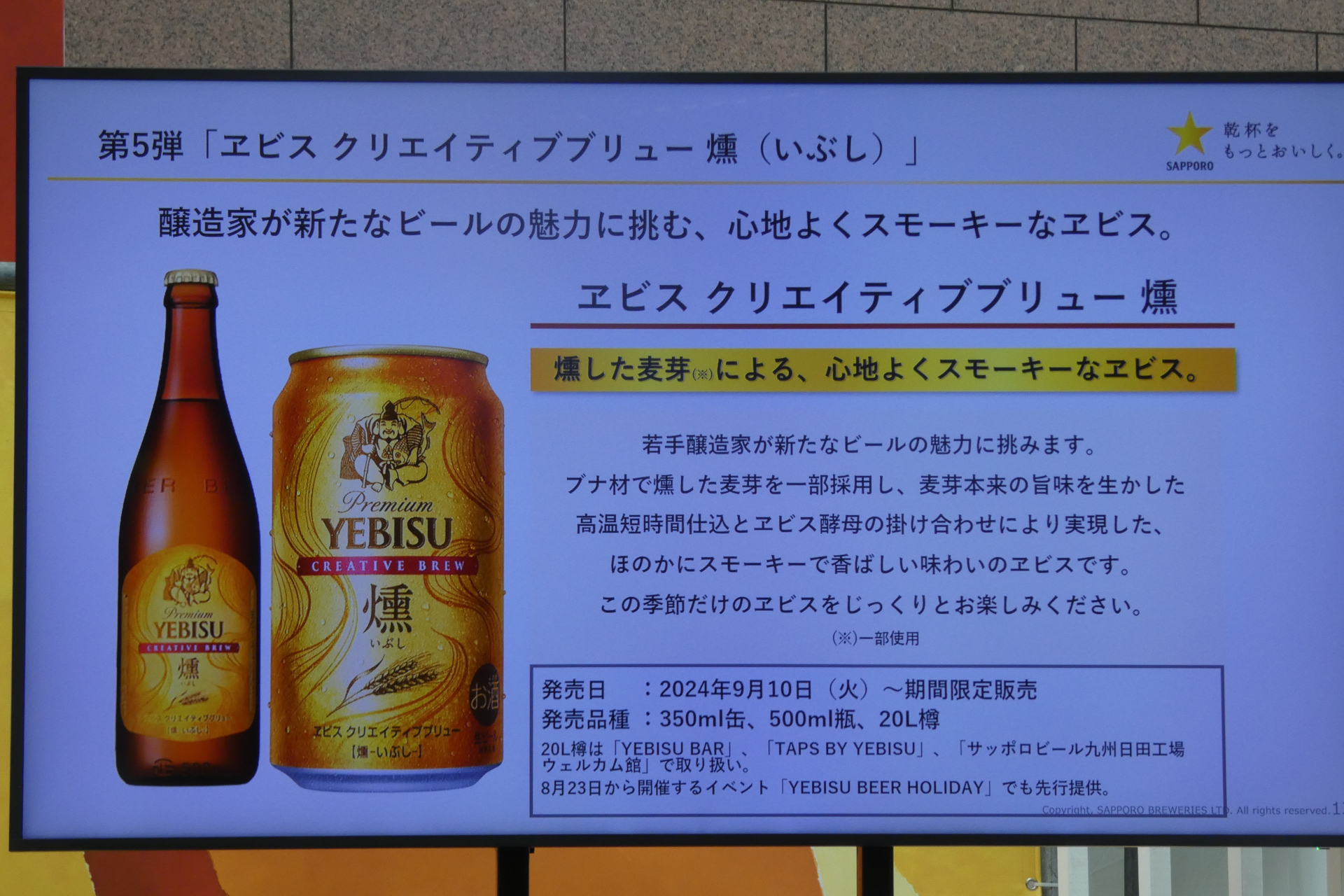 「ヱビス クリエイティブブリュー 燻」9月10日発売(3/18)