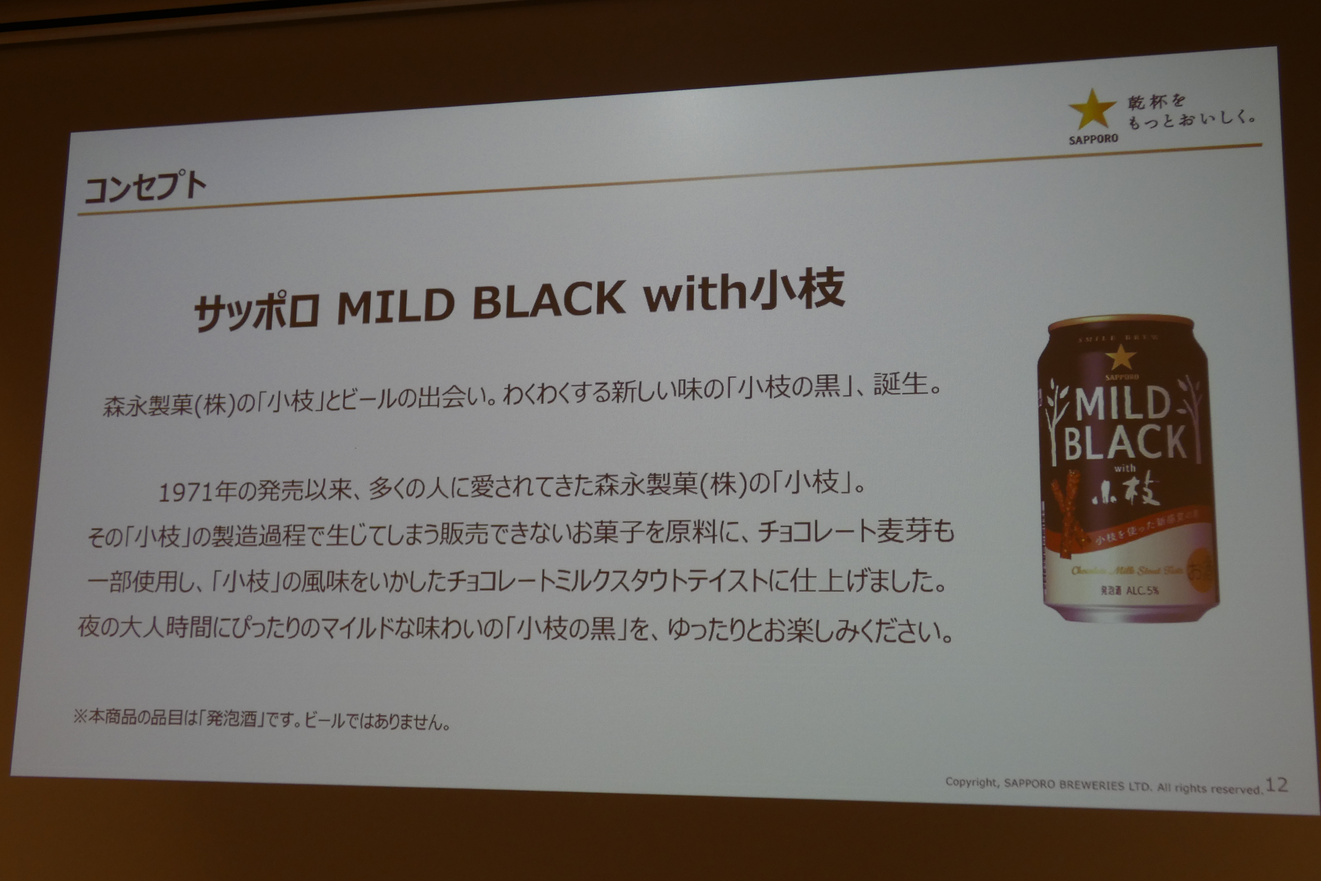 サッポロビールと森永製菓、「サッポロ MILD BLACK with小枝」を共同開発(3/6)