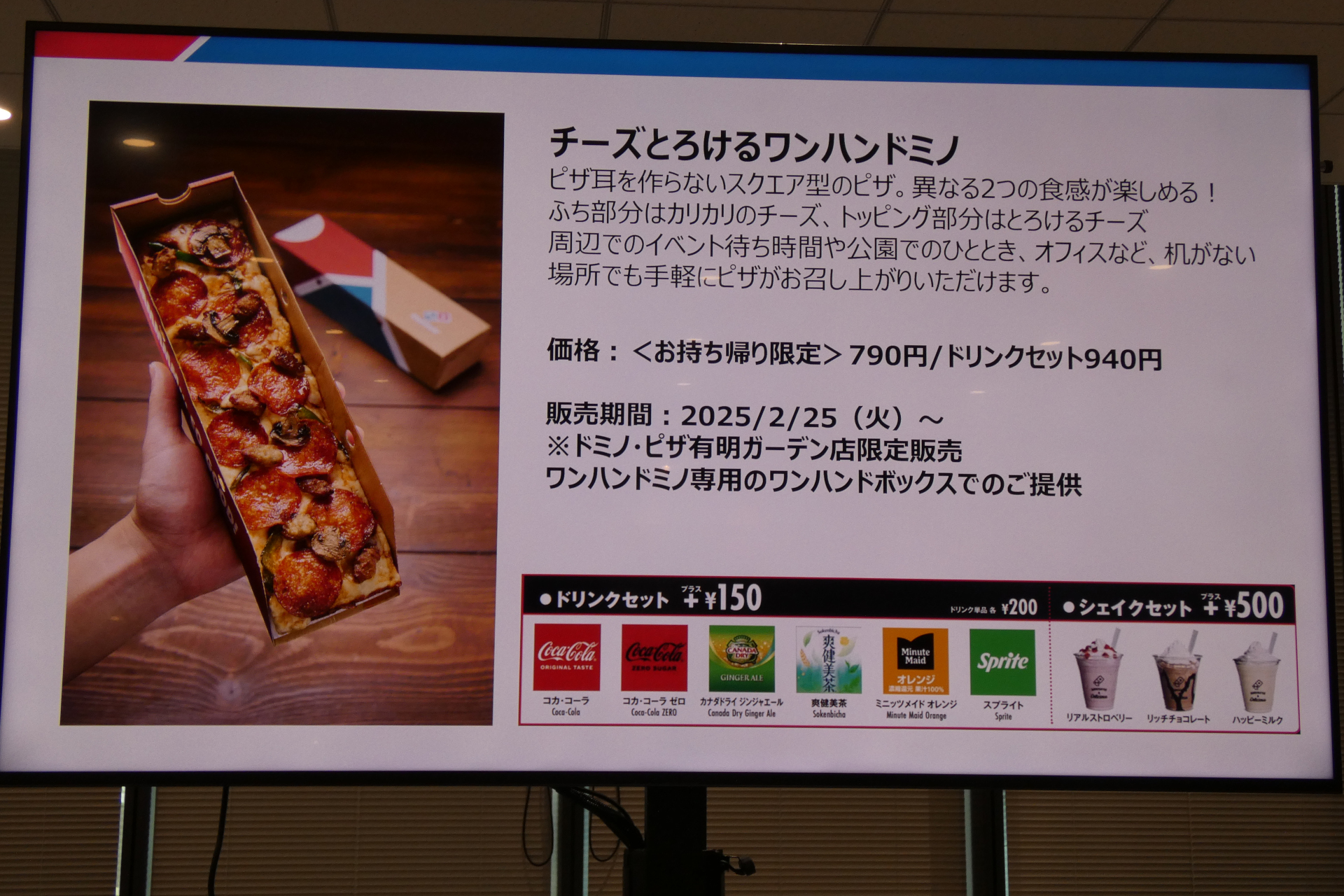 ドミノ・ピザ、有明ガーデン店限定で四角いワンハンドピザを発売(3/4)