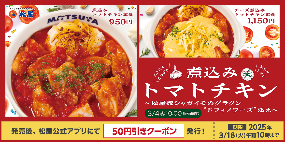 松屋、ロールキャベツ風の「煮込みキャベツのトマトハンバーグ」発売