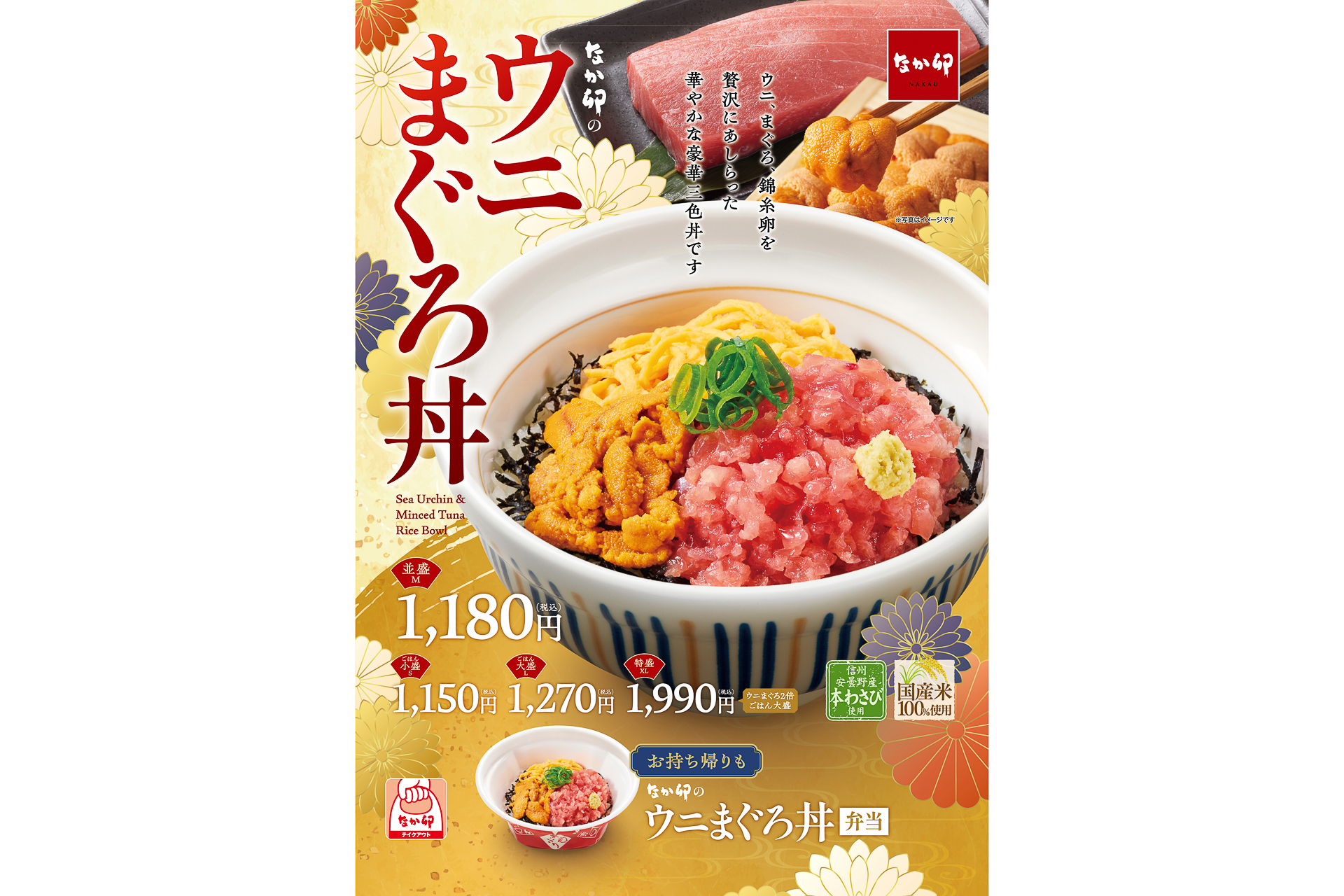 なか卯、「雲丹おろしうどん」「ウニ丼」9月17日発売