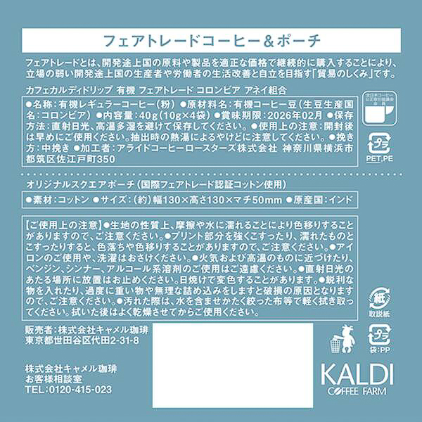 カルディ“フェアトレード”の「コーヒー&ポーチ」発売(10/11)