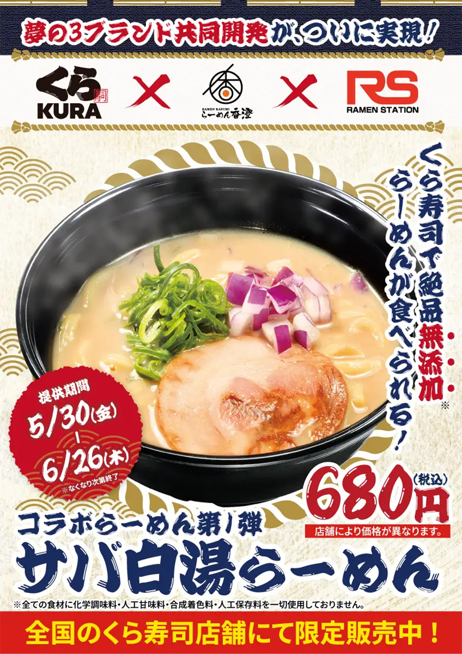 くら寿司「うなぎとまぐろ」フェア実施。らーめん香澄・ラーメンステーションと共同開発の「サバ白湯らーめん」も発売