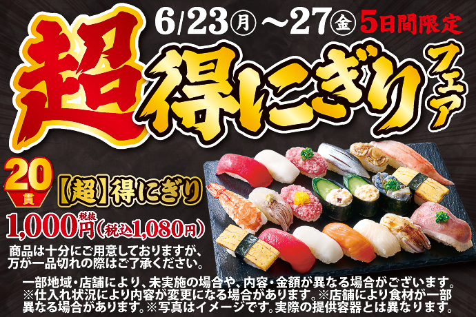 小僧寿し“20貫1296円”で好きなネタをたっぷり楽しむ「超たっぷりフェア」