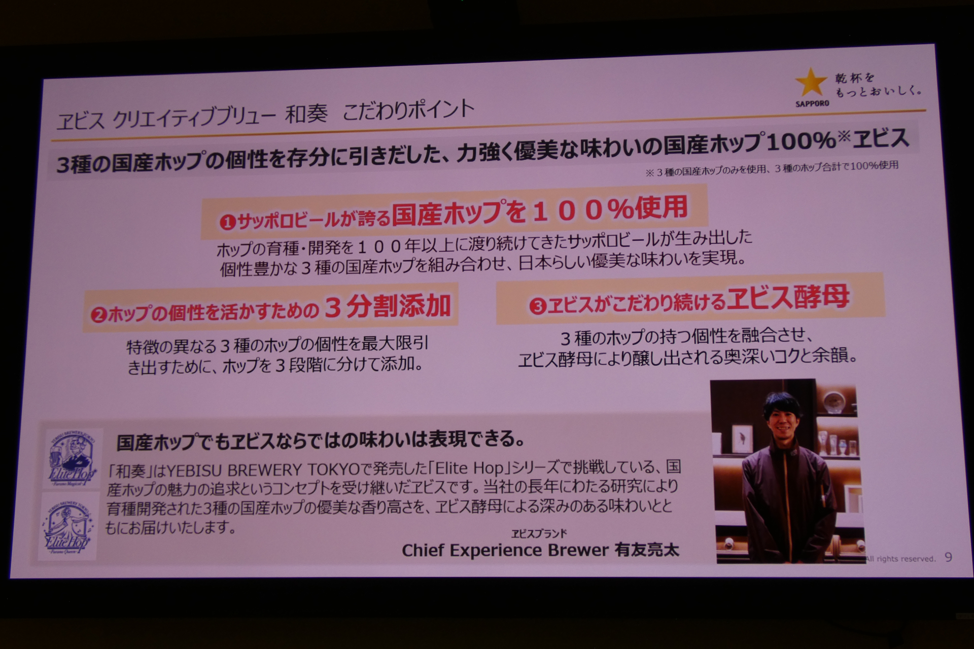 • サッポロビール「ヱビス クリエイティブブリュー 和奏(わかな)」発売。国産ホップ100%の優美な味わい