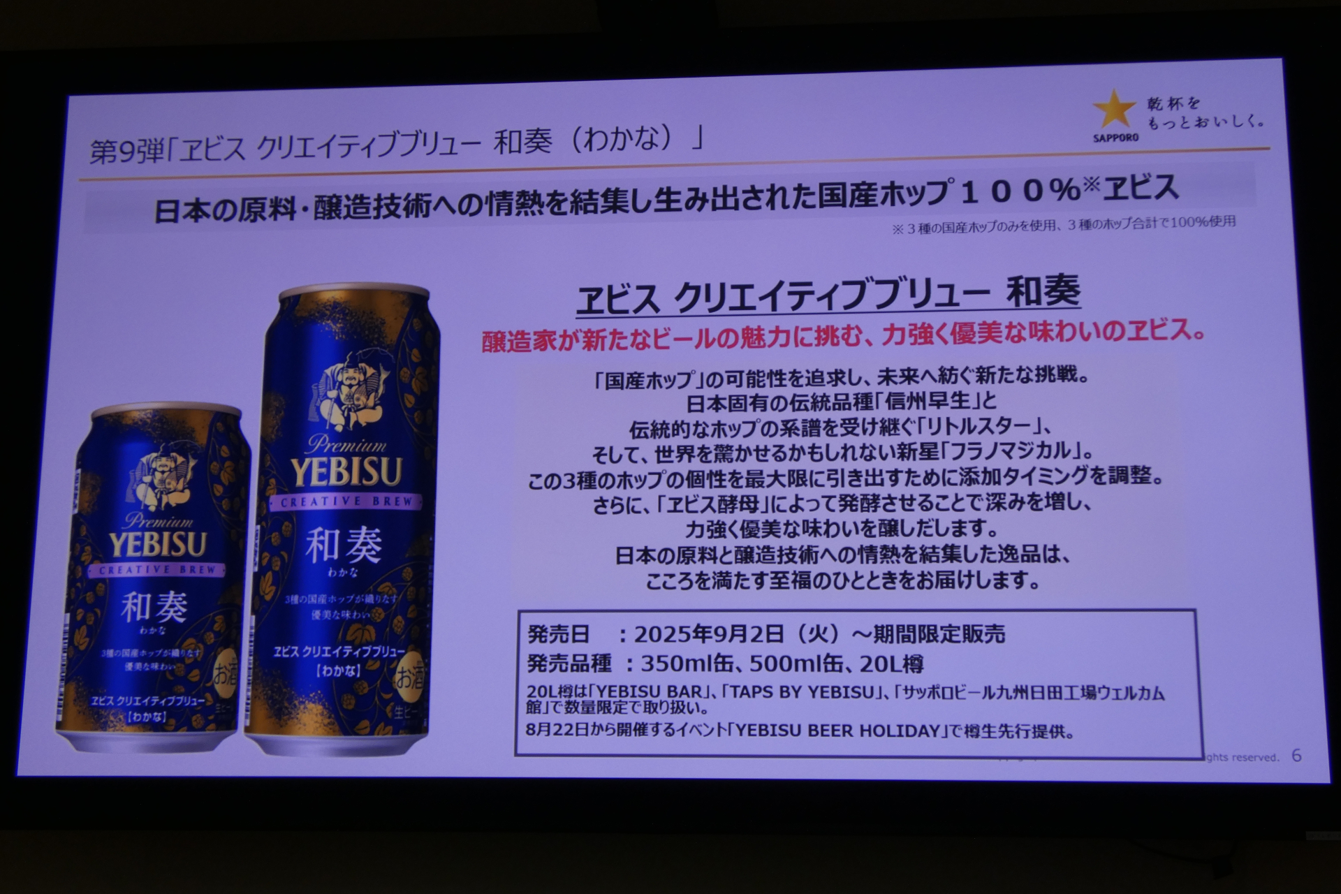 サッポロビール「ヱビス クリエイティブブリュー 和奏(わかな)」発売。国産ホップ100%の優美な味わい