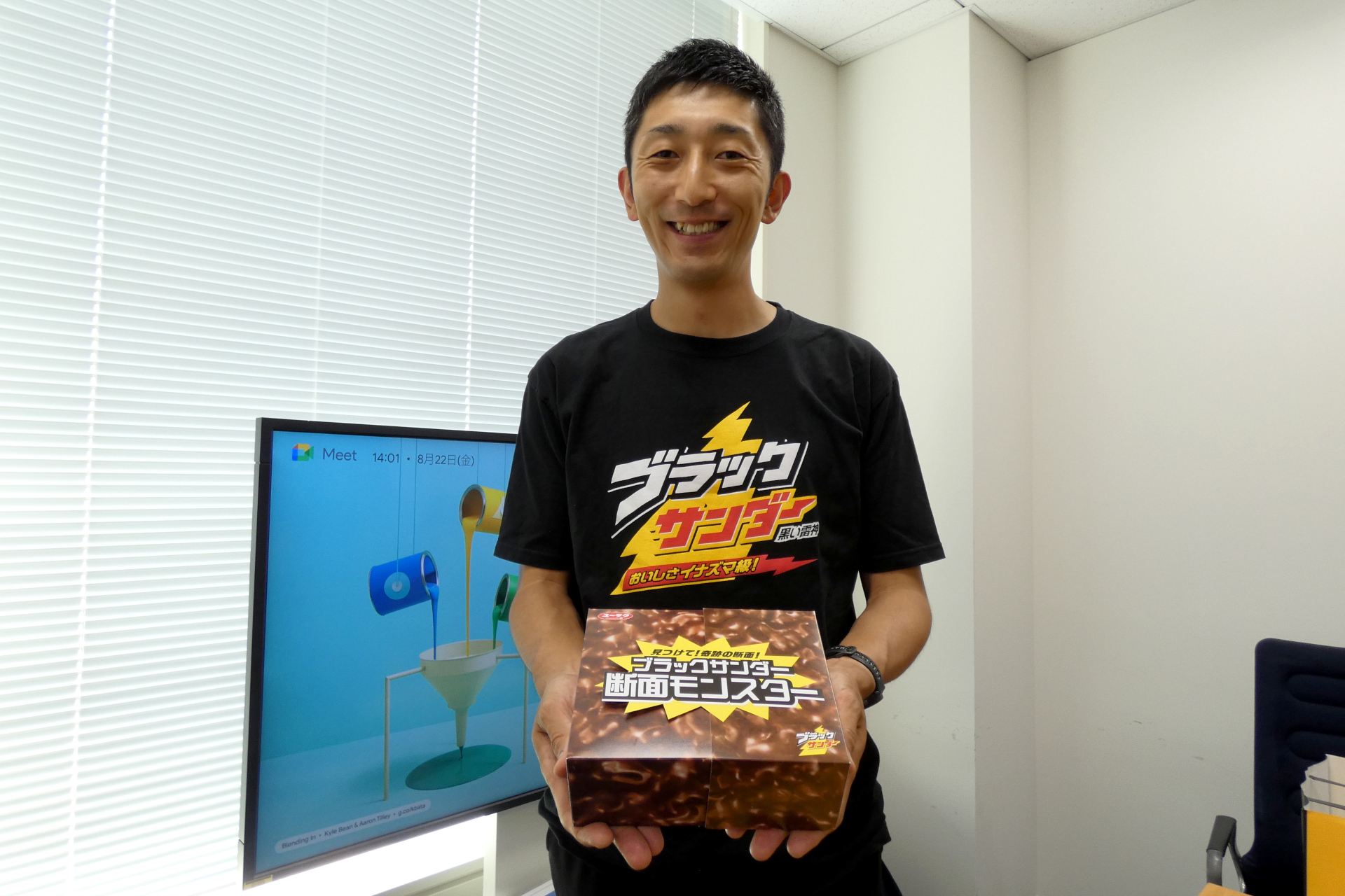 有楽製菓 河合社長が「ブラックサンダー断面モンスター」をアピール(2/8)