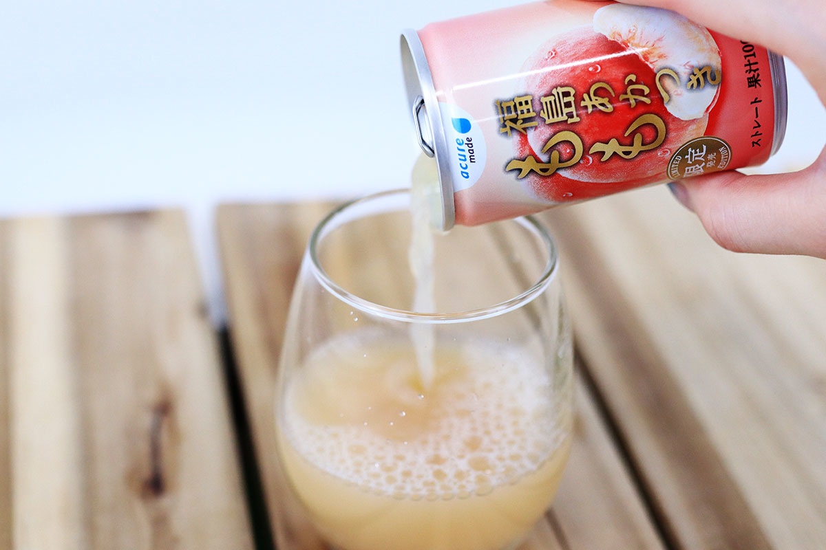 ストレート果汁100%の「福島あかつきもも」、JR東日本の駅ナカ自販機に今年も登場