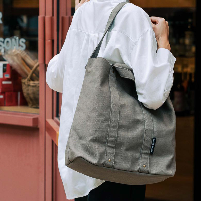 DEAN & DELUCA、ダブルハンドルで肩掛けもできる「コットントートバッグ カーキL」発売(3/10)
