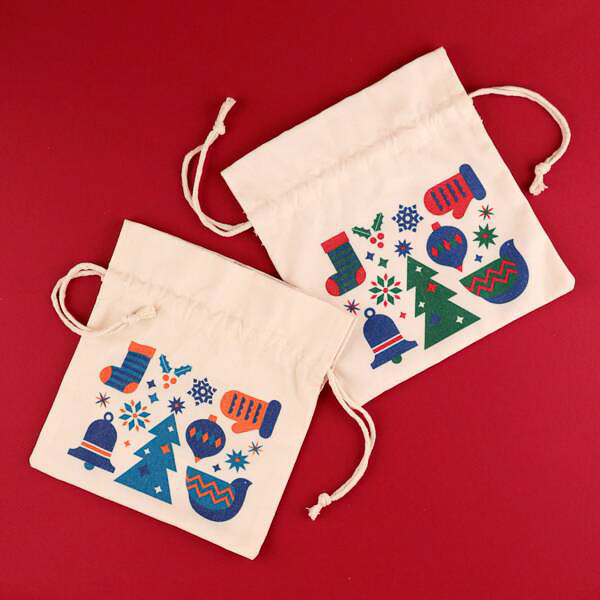 カルディ、コットン素材の巾着にクリスマスをデザインした「サンタさんからのおくりもの」発売(3/7)