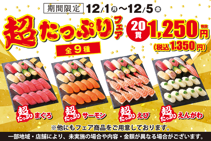小僧寿し、人気ネタ20貫1080円・上ネタ19貫1825円の「超得プレミアムフェア」実施。販売店リスト公開