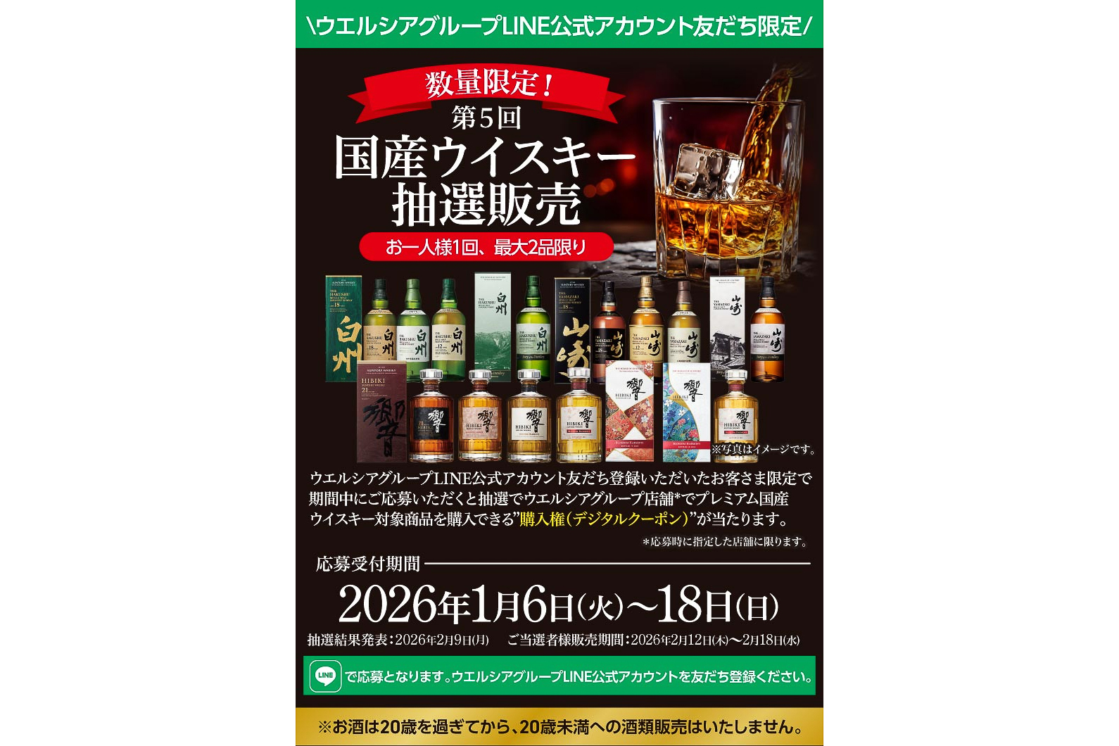 イオン、ウイスキー「山崎」「白州」「響」「竹鶴」などを抽選販売
