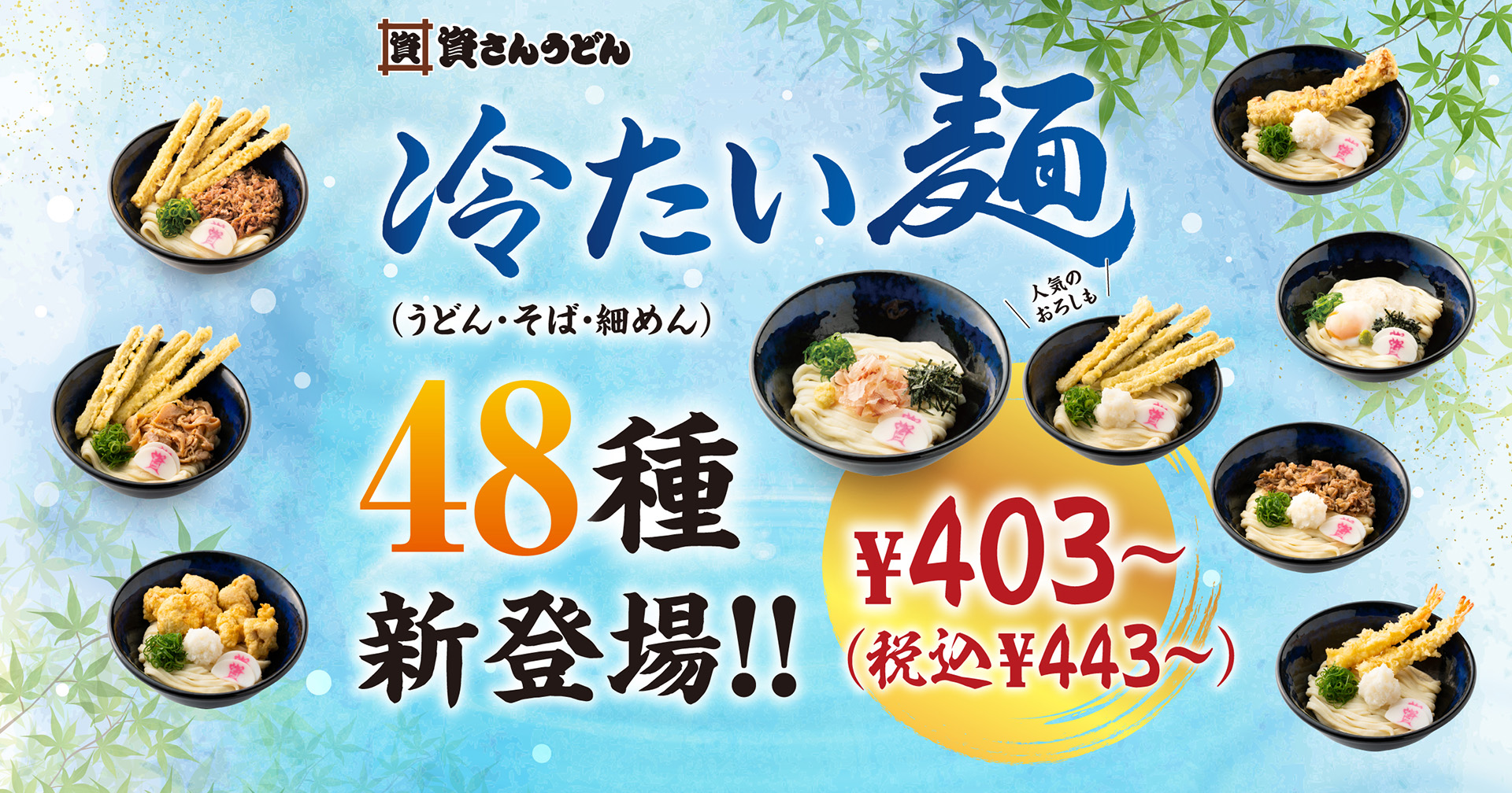 資さんうどん、冷たい麺48種が新登場!ごぼ天おろしぶっかけ/山いも温玉ぶっかけ/ごまつゆなどを発売