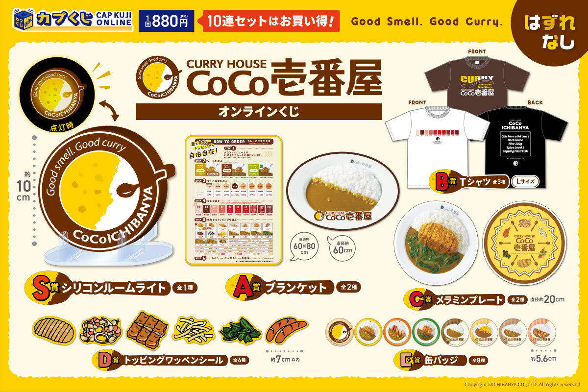 「カレーハウスCoCo壱番屋」のルームライトやブランケットが当たるオンラインくじを発売(2/10)